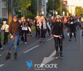 Die Rollnacht Düsseldorf ist eine Veranstaltung für Inlineskater und Rollschuhfahrer. Gemeinsam rollen wir durch die abgesperrten Straßen der Stadt und genießen den glatten Asphalt. Start und Ziel ist an der Reuterkaserne 200m nördlich vom Burgplatz in der Düsseldorfer Altstadt. Schirmherr der Rollnacht ist Oberbürgermeister Dr. Stephan Keller. Die Rollnächte werden durch die Polizei, den Führungswagen der Skateschule NRW sowie durch Krankenwagen des ASB begleitet. Die Teilnahme ist kostenlos und geschieht auf eigene Gefahr. Wir raten zum Tragen der Schutzbekleidung und bitten um Beachtung der Regeln. Eine Anmeldung ist nicht erforderlich.